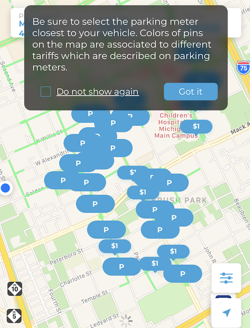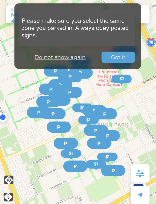 • Selecting the nearest meter also ensures you have selected the correct zone. Tariffs remain the same but the rules that govern parking change throughout the city. Knowing the correct zone eases enforcement and allows the app to warn users when their time is about to run out.